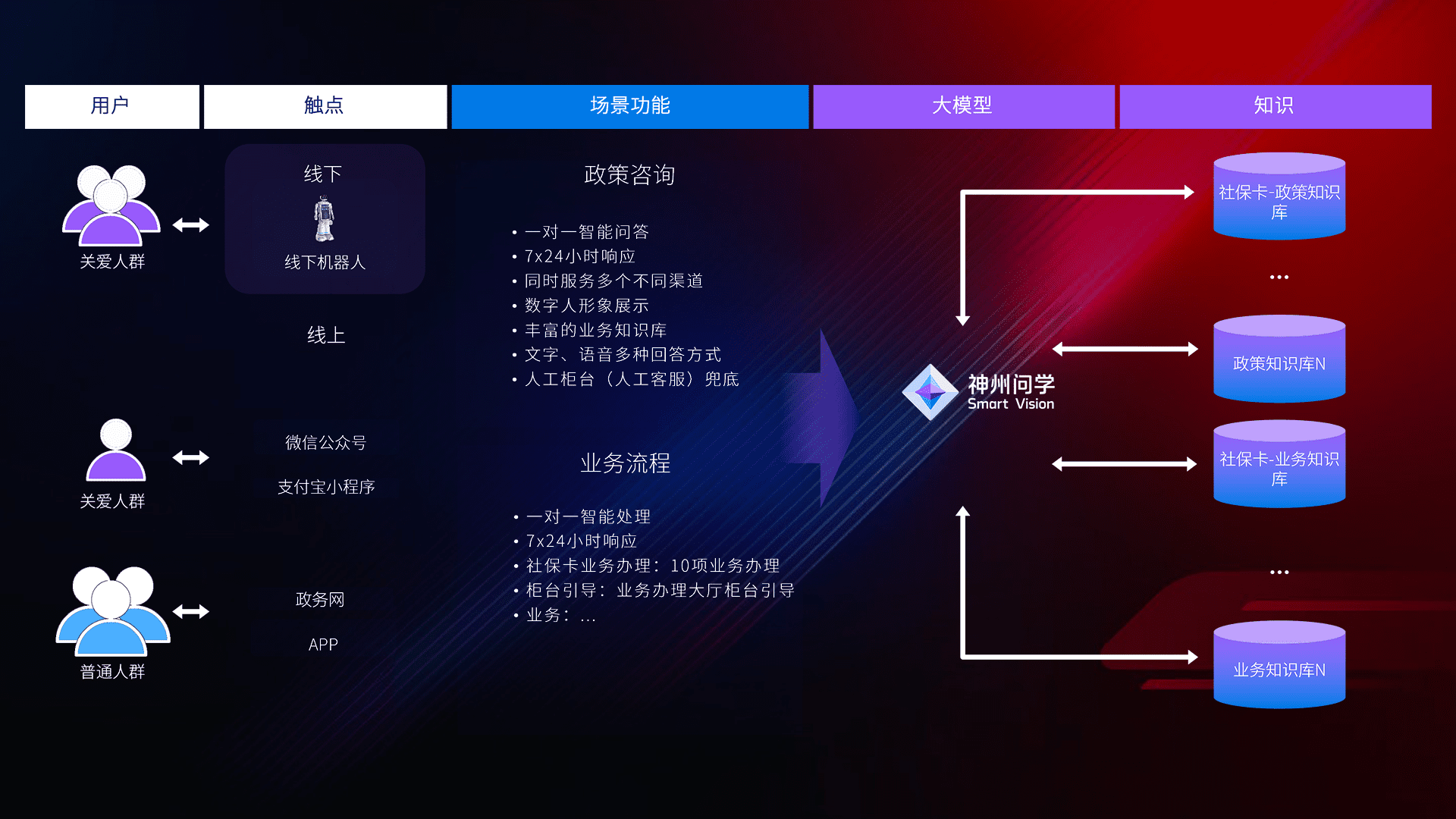 • 线上线下全覆盖:线上提供微信公众号、、支付宝小程序、、政务网、、、app多种渠道,,与线下机器人形成完整服务体系。。。。